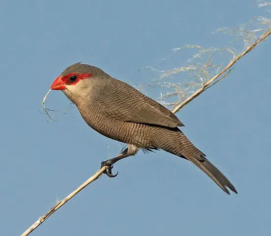 Originally from sub-Saharan Africa, the common waxbill has since spread globally. It prefers open, grassy areas, thriving in dry habitats such as shrubby landscapes, open pastures, and even urban settings. Forest edges and clearings also serve as everyday environments for this adaptable bird.