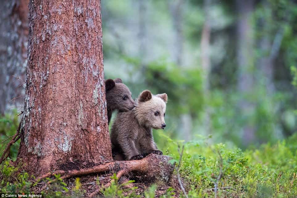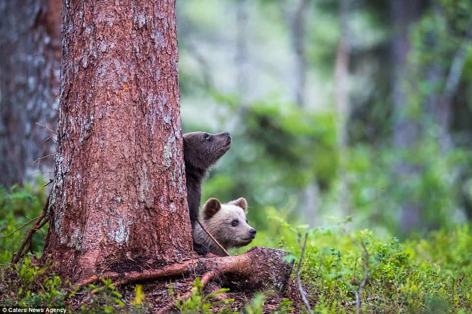 In a secluded forest in northern Finland, these cute cubs cautiously made their way up a tree, eager to showcase their newfound abilities.