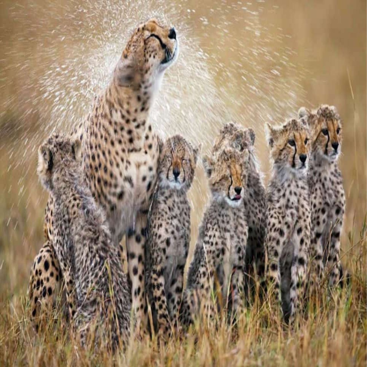 Cheetah Cubs Get a Surprise Shower in the Masai Mara