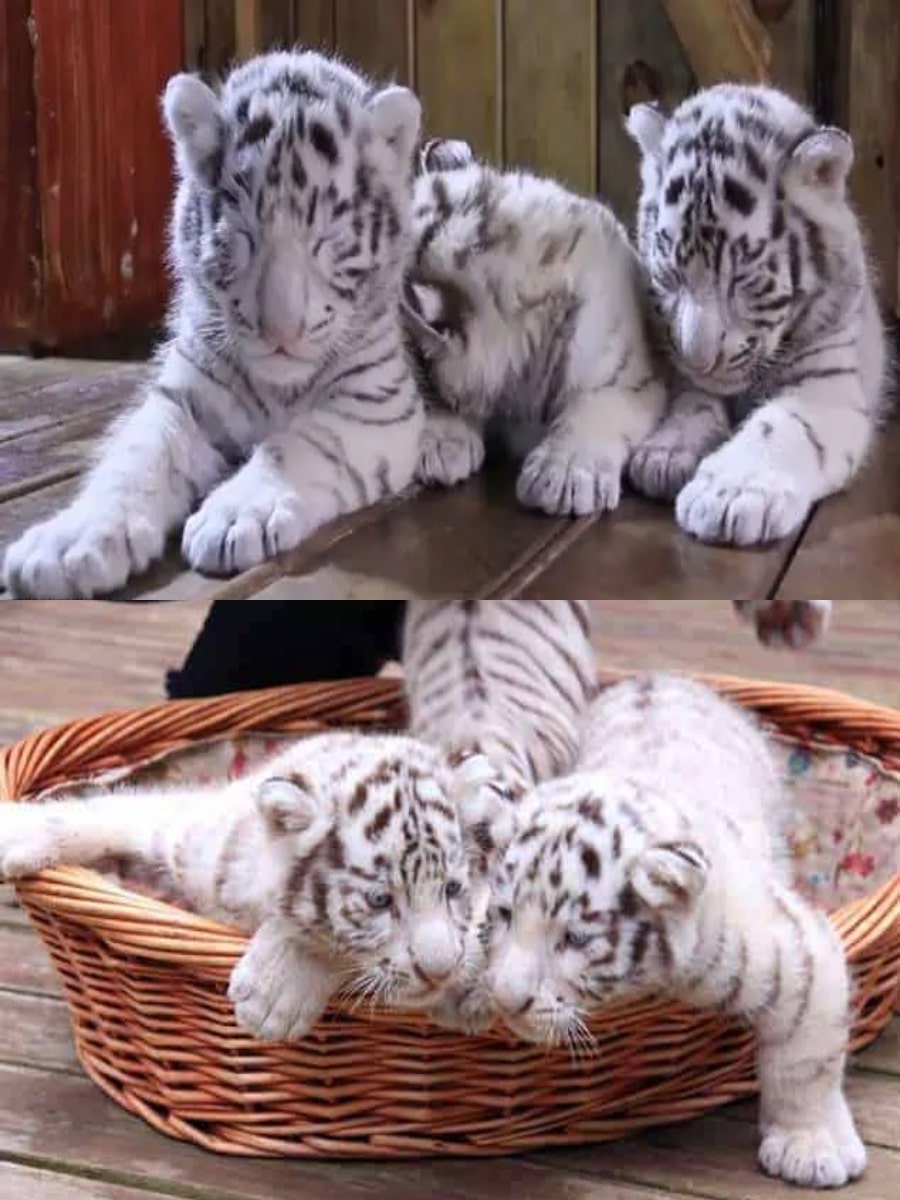 Adorable White Tiger Triplets Make Their Public Debut in China