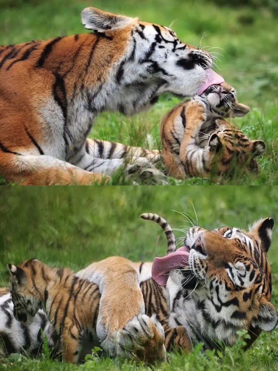 Heartwarming Bond: Mother Siberian Tiger Grooms Her Cubs