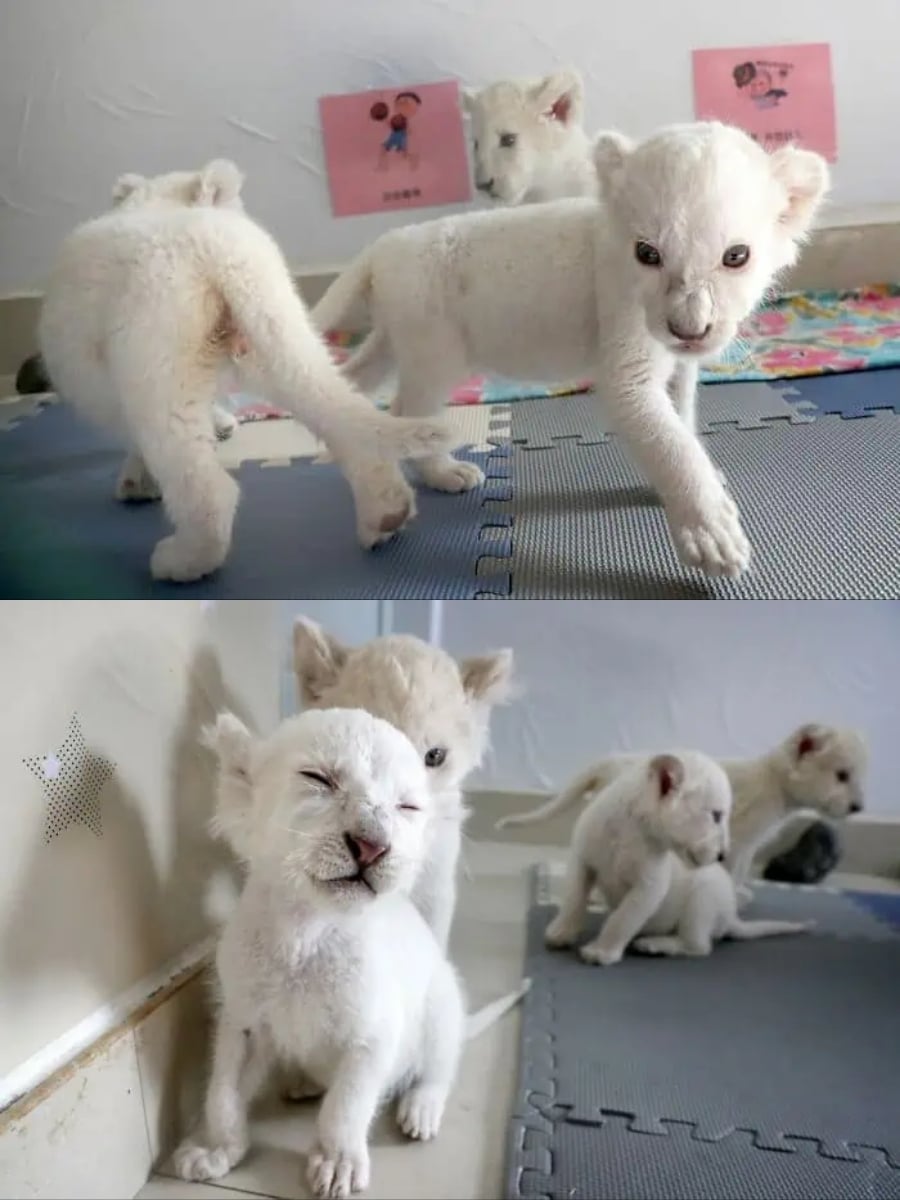 Rare White Lion Quadruplets Born in Chinese Zoo
