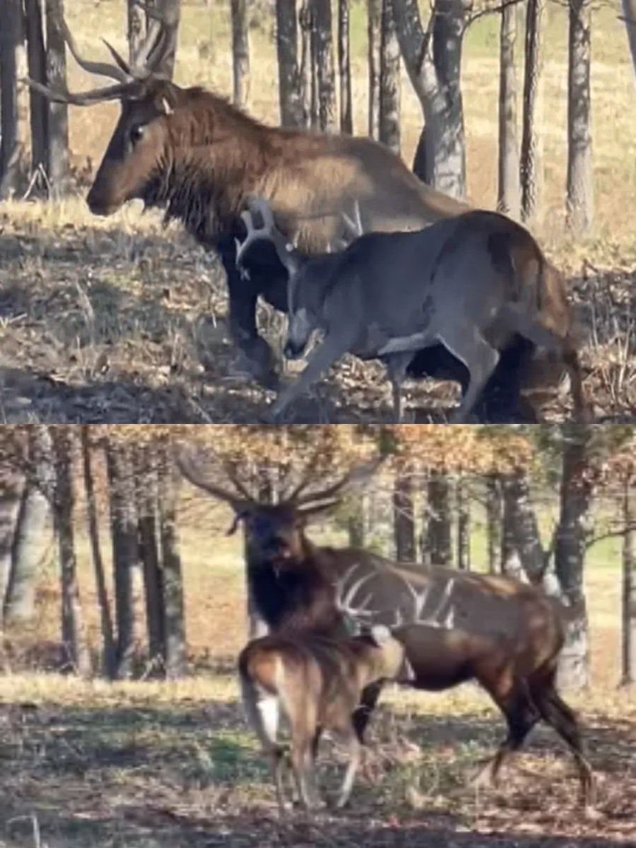 Unexpected Showdown: Buck vs. Bull Elk