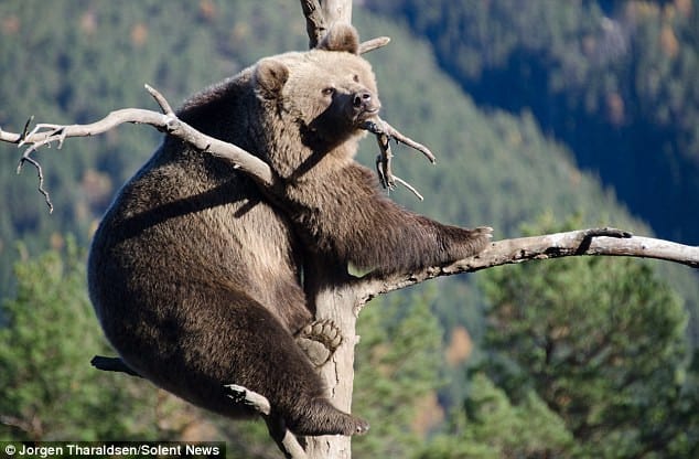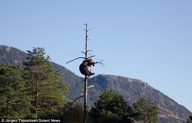 It appears barely sufficient! However, the bear exhibited intelligence by evenly distributing her weight across the slender branches. It was a truly remarkable sight.” As an avid photographer, Tharaldsen felt blessed to capture such a moment.