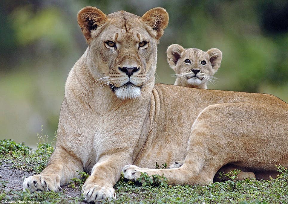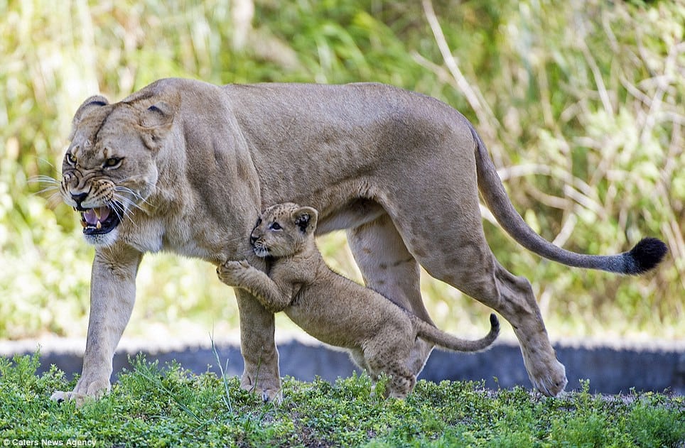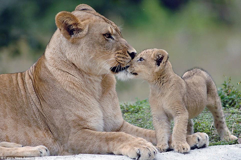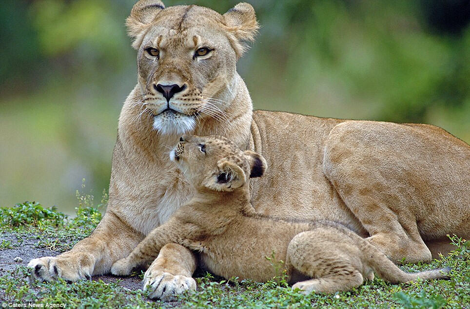 The heartwarming images depict four-year-old Asha and her young cub embracing each other tenderly, playing gently as any mother and baby would.