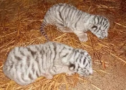 Simon and Jeremy, stunning with their snowy fur and black stripes, were six months old at the time of their rescue.