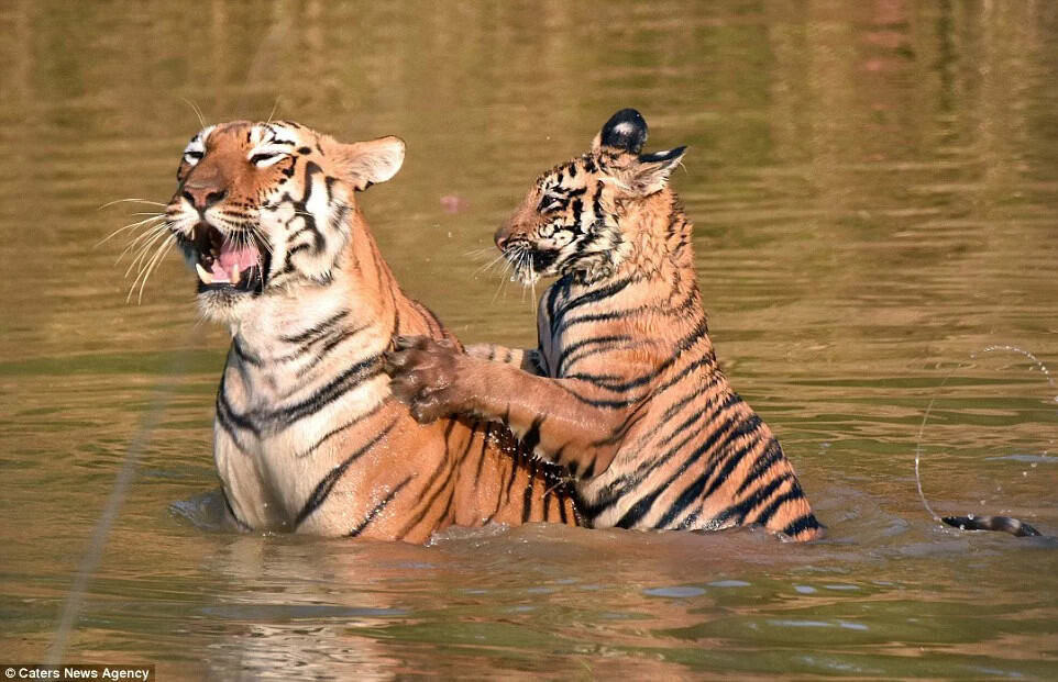 Ninad, 26, observing the tigers’ behavior in the reserve, managed to capture the tiger mother as she tried to give her cub a bath in the river.