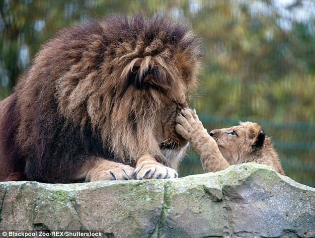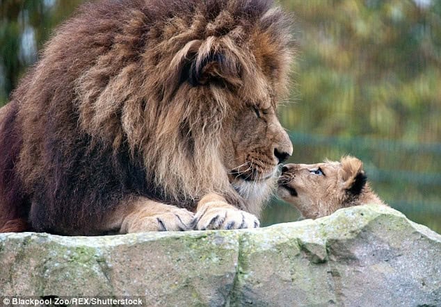However, when Wallace, an African lion at Blackpool Zoo, lost his mate Rachel to a stroke when their only cub, Khari, was just seven months old, he shattered these norms and took on the role of a devoted single father.