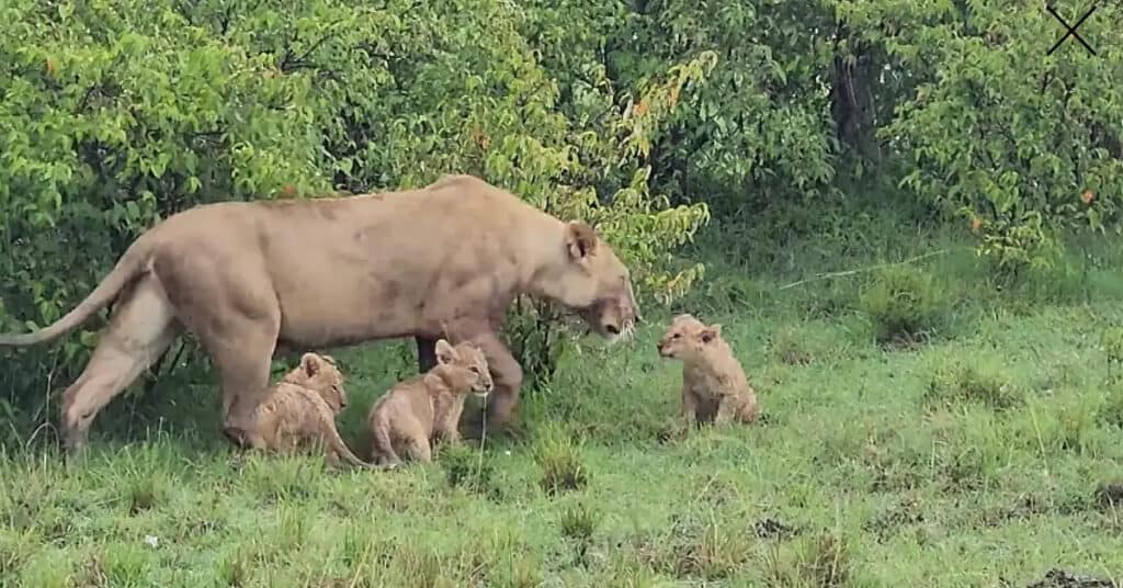 The previous evening, we left the cubs playing and the mother stretching and waking up: