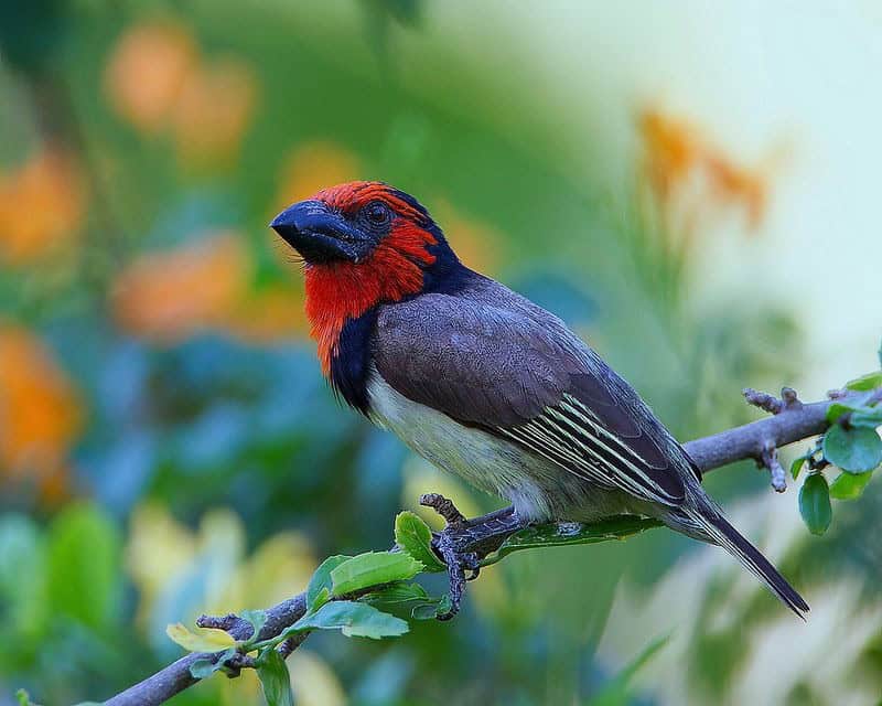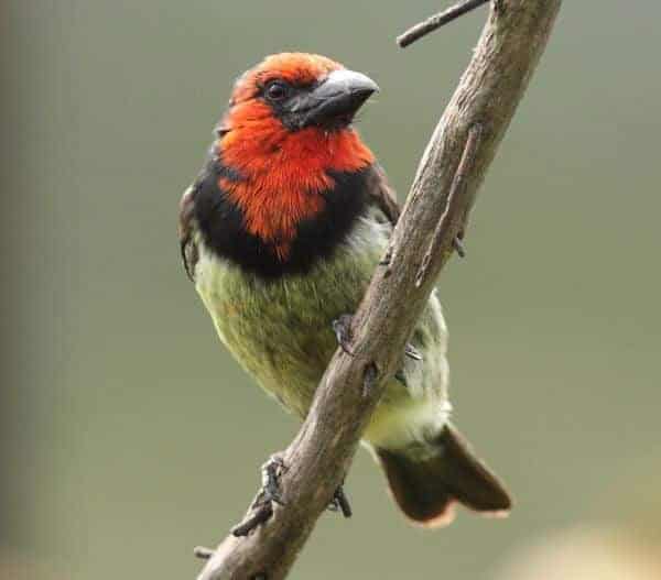 The Black-collared Barbet (Lybius torquatus) is a striking bird known for its bold black collar and remarkable vocalizations.