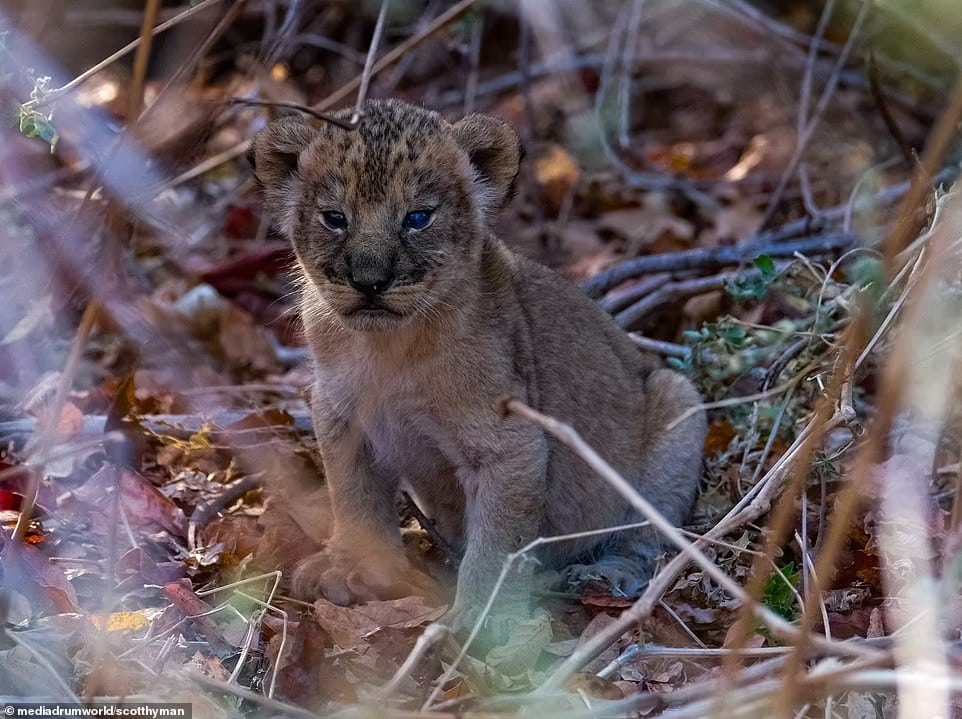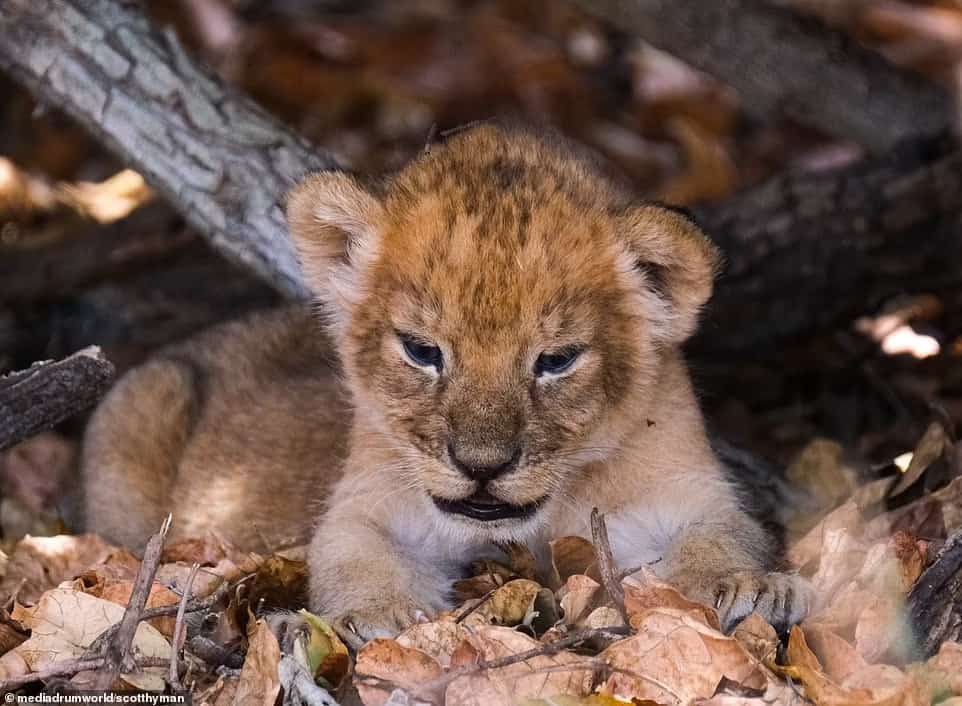 The lion cub had been left alone by its lioness mother while she moved her other children to the safety of a nearby bush before she went hunting for food.