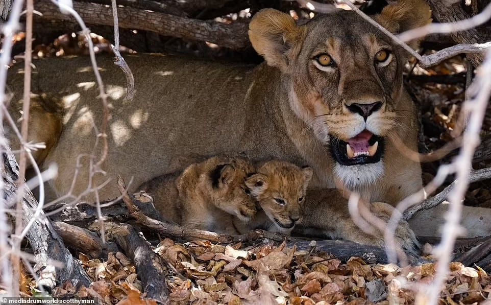 According to Hyman, the lioness had been leading her cubs deeper into the bush for their safety, leaving them momentarily to embark on a hunting expedition.