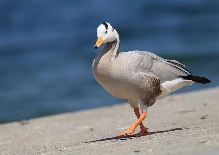 Bar-headed geese are light gray with distinctive white plumage on their heads, yellow-orange beaks and legs, and large wings that enable high-altitude flight. Males are generally larger than females, though they don’t display much difference in appearance. In captivity, they are easily tamed and are known for their peaceful temperament.