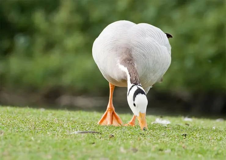 An omnivorous species, bar-headed geese feed on aquatic plants, grass, insects, and larvae. In captivity, they readily adapt to a variety of diets.
