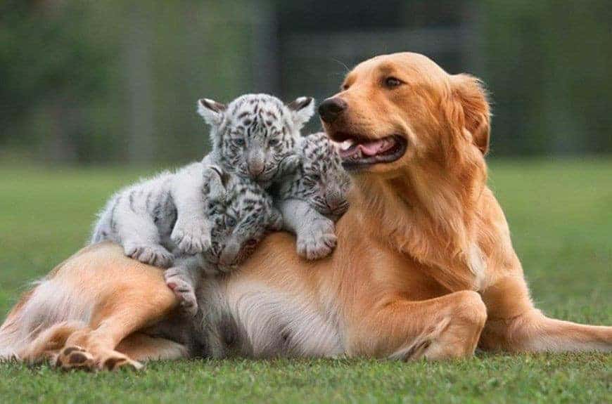 The bond between the tiger cubs and the grieving dog emphasizes the resilience and adaptability of animals, illustrating that love knows no boundaries.