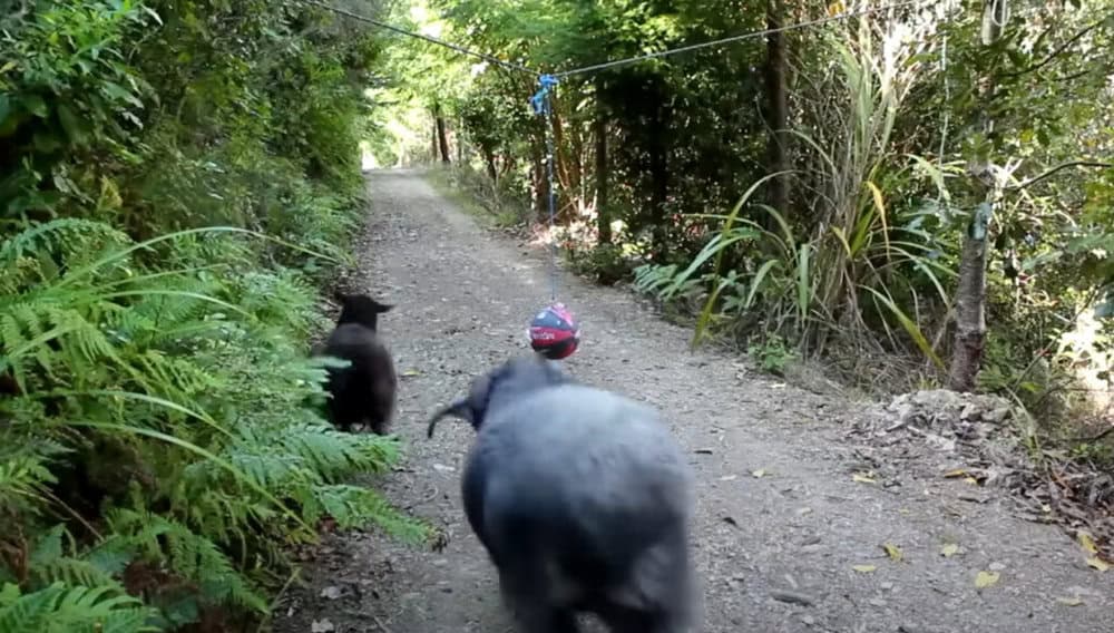 The video starts with Rambo’s owner setting up a rope with a tetherball attached to it, strategically placing hidden cameras in different locations to capture the anticipated action.